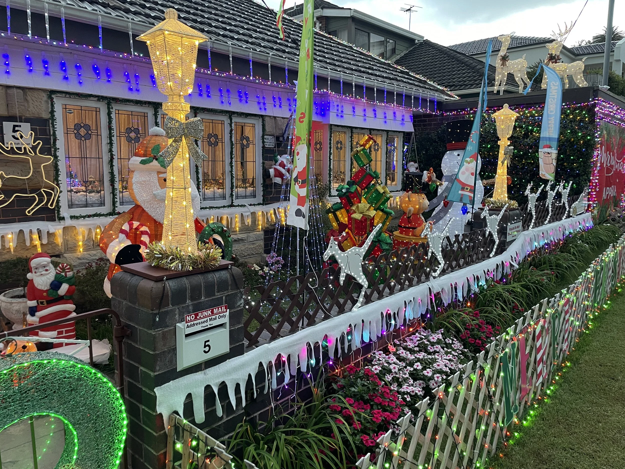 The area encompassing Torrington Road and Storey Street in South Coogee is known for its festive decorations. Residents collaborate to create a joyful and illuminated neighbourhood, perfect for an evening walk.